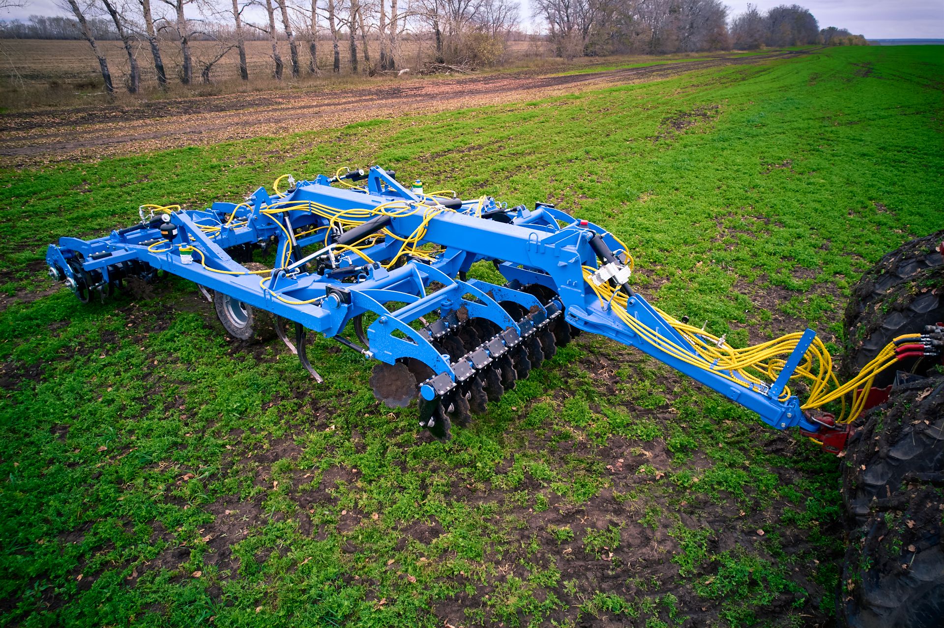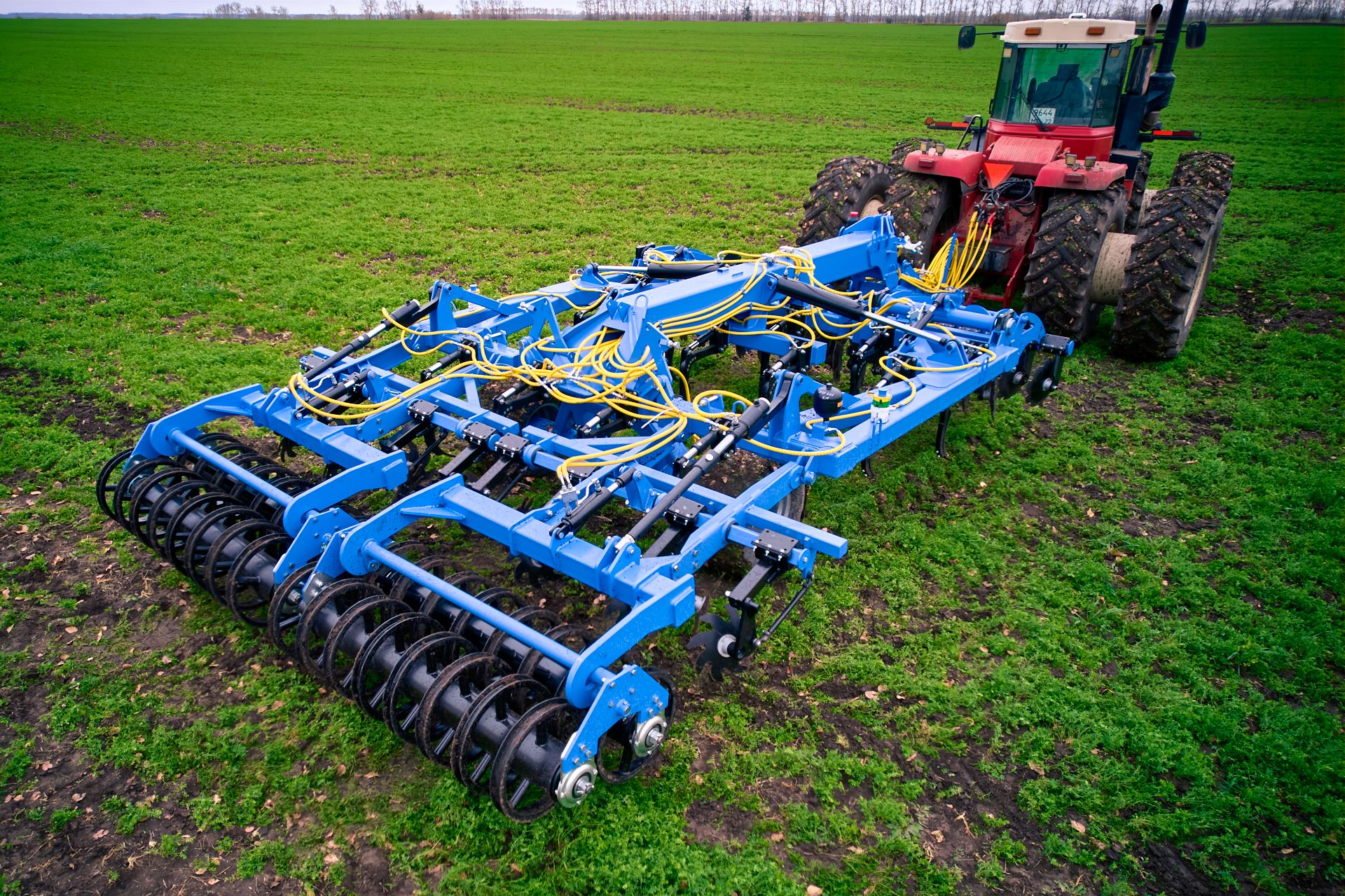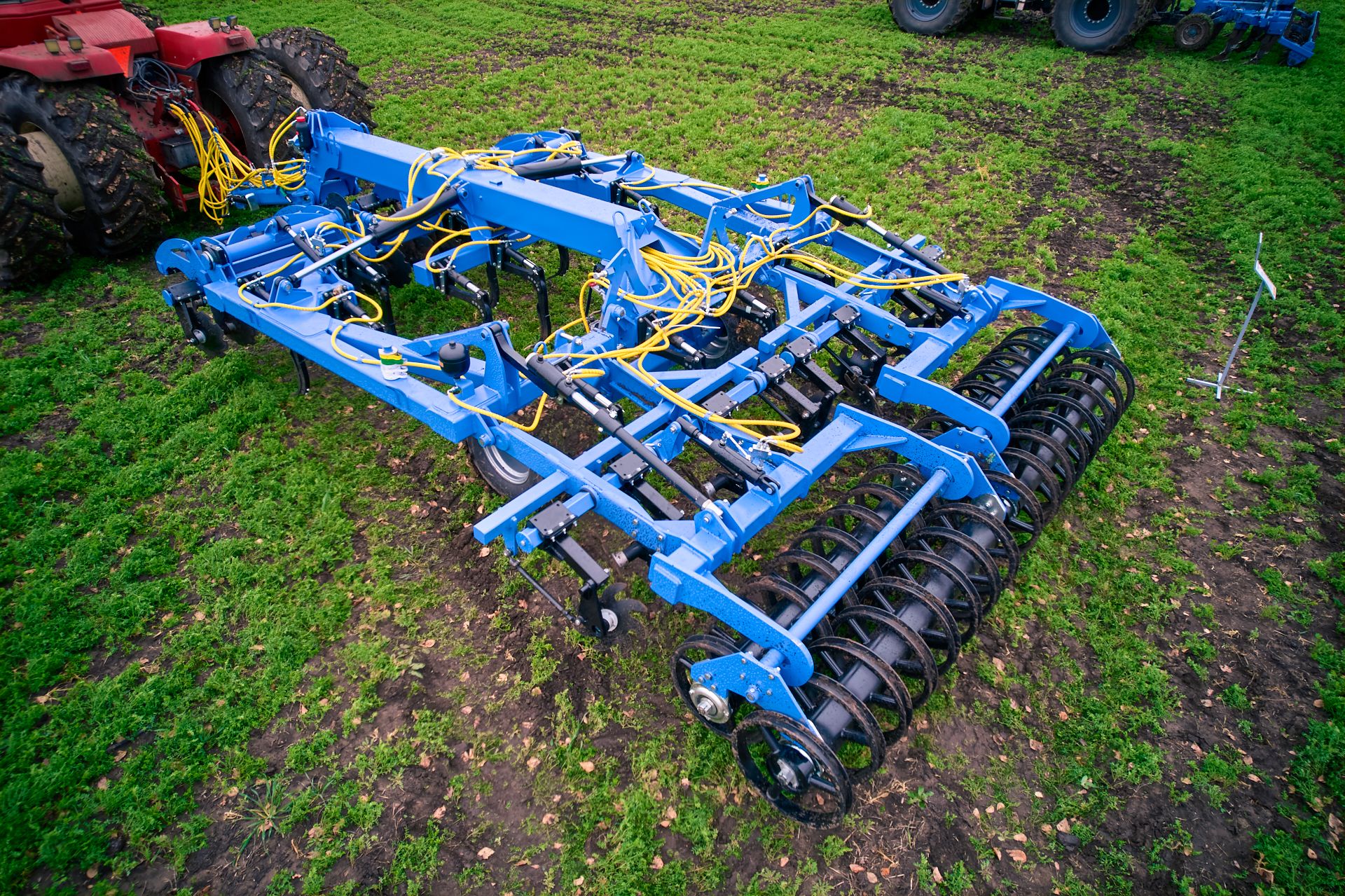 Далее идет секция дисков, которая позволяет обеспечить максимальное выравнивание обработанного участка почвы. Завершающая стадия уплотнения обработанного слоя почвы — прикатывание тандемными катками с U-образным профилем. Конструкция катка позволяет работать без забивания и обеспечивает обратное уплотнение земли, сохранение влаги и предотвращение ветровой эрозии почвы.
